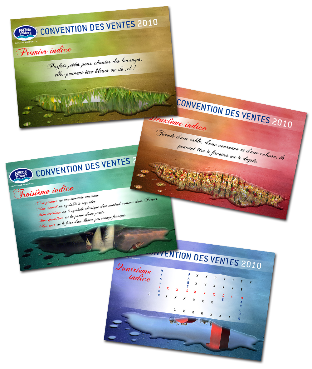 - Elaboration de 4 énigmes pour faire deviner la destination aux collaborateurs (4 mailings) ;